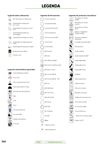 Legenda datos referencias Legenda de ferramentas Legenda de productos neumáticos