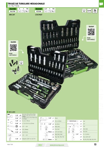 1/4” x13 4, 4.5, 5, 5.5, 6, 7, 8, 9, 10, 11, 12, 1/2” x1 8mm
