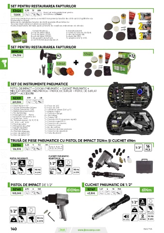 TRUSĂ DE PIESE PNEUMATICE CU PISTOL DE IMPACT 312Nm ȘI CLICHET 61Nm