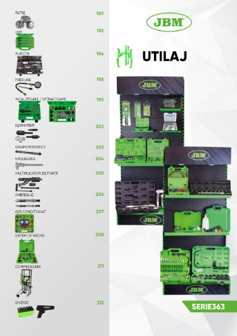 FILTRE 180 ULEI 182 UTILAJ INJECȚIE 184 PRESIUNE 188 INCALZITOARE / EXTRACTOARE 190 EŞAPAMENT 202 DINAMOMENTRICE 203 MĂSURAREA 204 MULTIPLICATOR DE FORȚĂ 205 AMBREIAJE 206 AER CONDIȚIONAT 207 SISTEM DE RĂCIRE 208 COMPRESOARE 211 DIVERSE 212 SERIE363