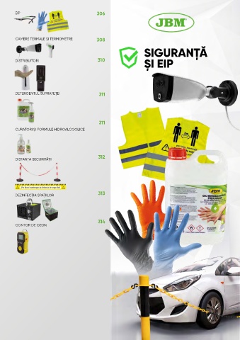 EIP 306 CAMERE TERMALE ȘI TERMOMETRE 308 SIGURANȚĂ ȘI EIP DISTRIBUITORI 310 DETERGENTUL SUPRAFEȚEI 311 311 CURATORI ȘI FORMULE HIDROALCOOLICE 312 DISTANȚA SECURITĂȚII 313 DEZINFECȚIA SPAȚIILOR 314 CONTOR DE OZON