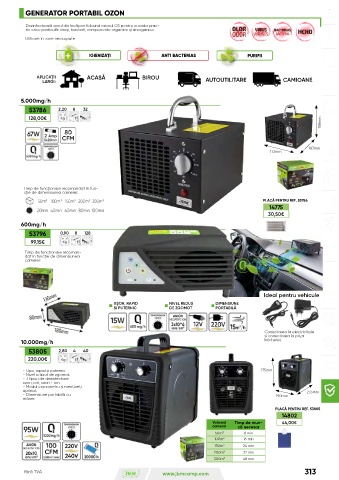 Dezinfectează aerul din încăperi folosind ozonul O3 pentru a oxida prac-