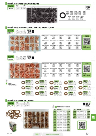 TRUSĂ DE ŞAIBE DE CUPRU PENTRU INJECTOARE